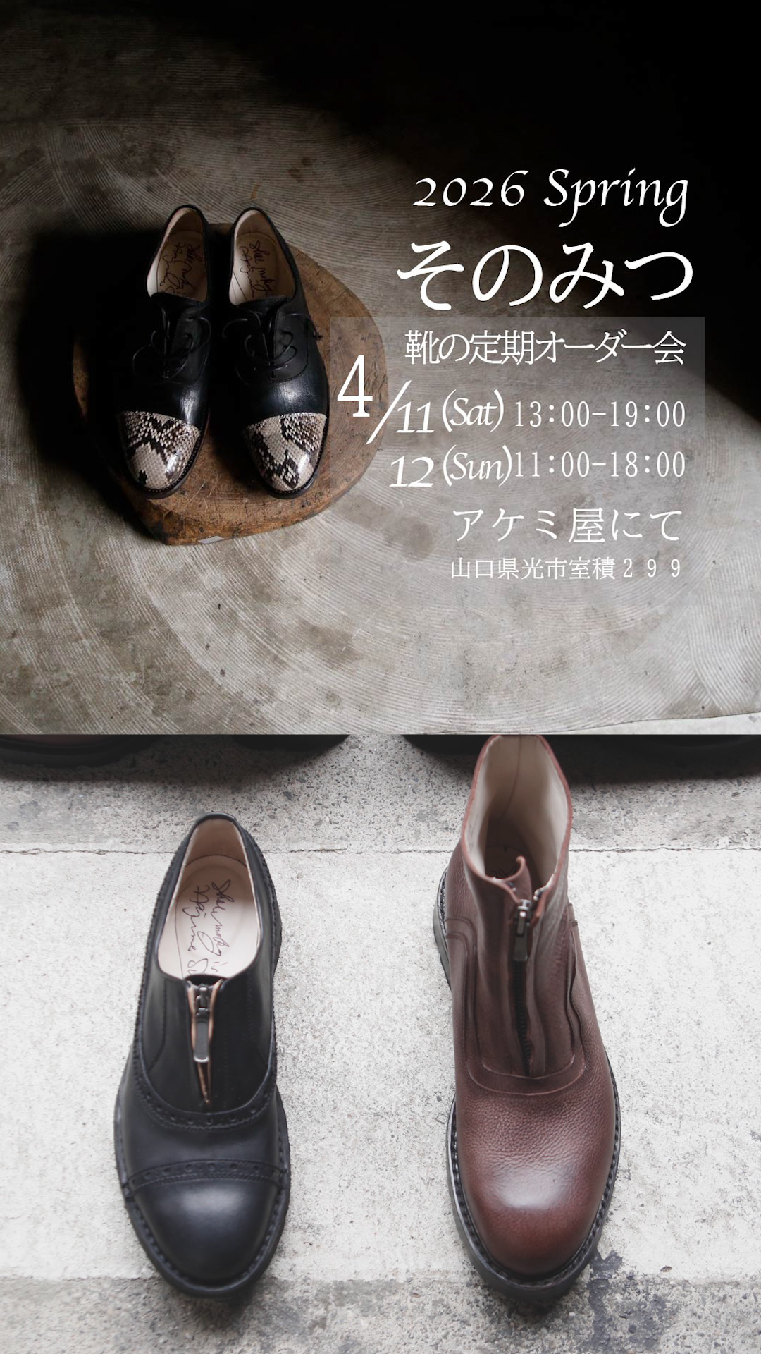 アケミ屋恒例、「そのみつの靴オーダー会」のお知らせです。